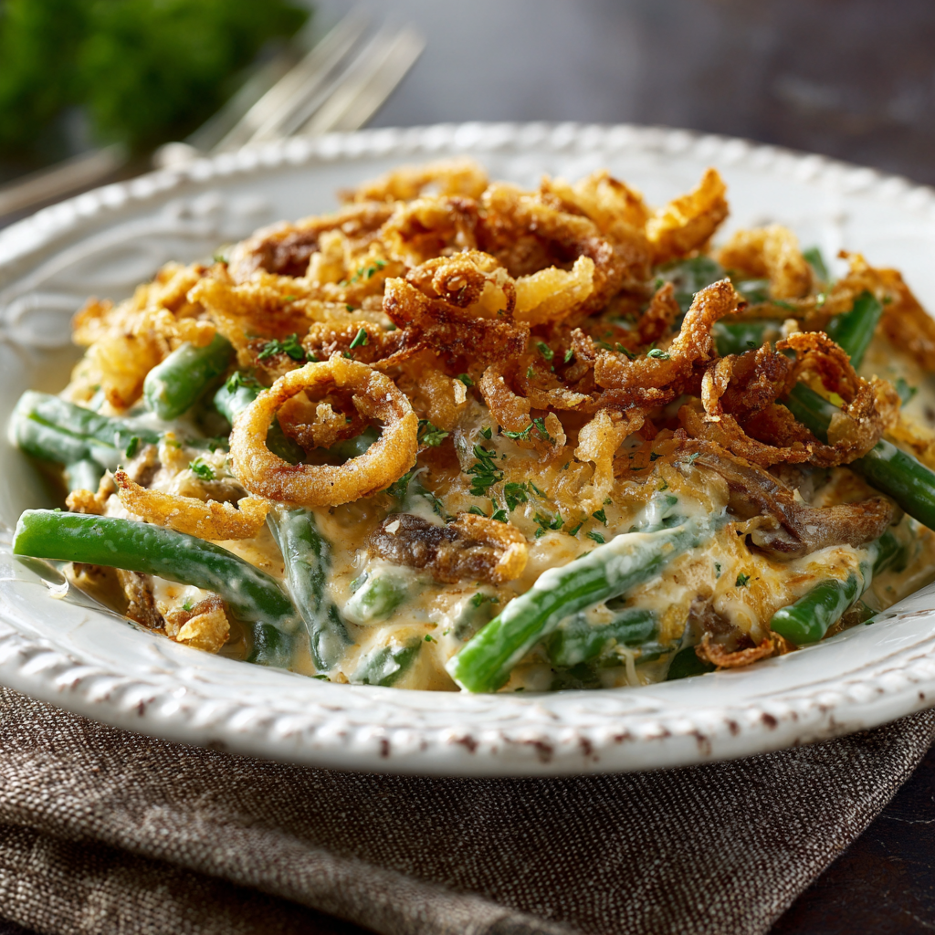 Campbell’s Green Bean Casserole is more than just a side dish—it’s a cherished American tradition that brings families together during the holidays. This simple yet satisfying recipe has earned its place on holiday tables for nearly seven decades, and for good reason. With its creamy texture, savory flavor, and crispy topping, it’s a dish that appeals to all ages and skill levels. Whether you follow the classic recipe exactly or add your own creative touches, this green bean casserole is guaranteed to be a hit at your next gathering. Master this iconic dish and you’ll have a reliable go-to recipe that will be requested year after year, creating lasting memories and delicious moments around your family table.